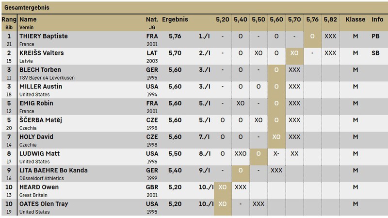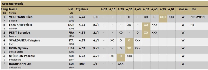 Am Donnerstag lag nach nach 30 Minuten bereits 4,52m auf. Für 6 Athletinnen. 5 übersprangen die Weltklassehöhe. Das gab's dieses Jahr noch in keinem Wettkampf auf der ganzen Welt. Drei
