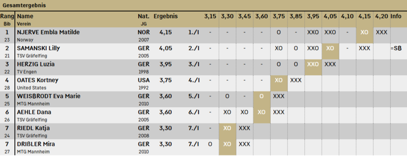 Eva Marie Weisbrodt GER, 3,70m, MTG Mannheim
